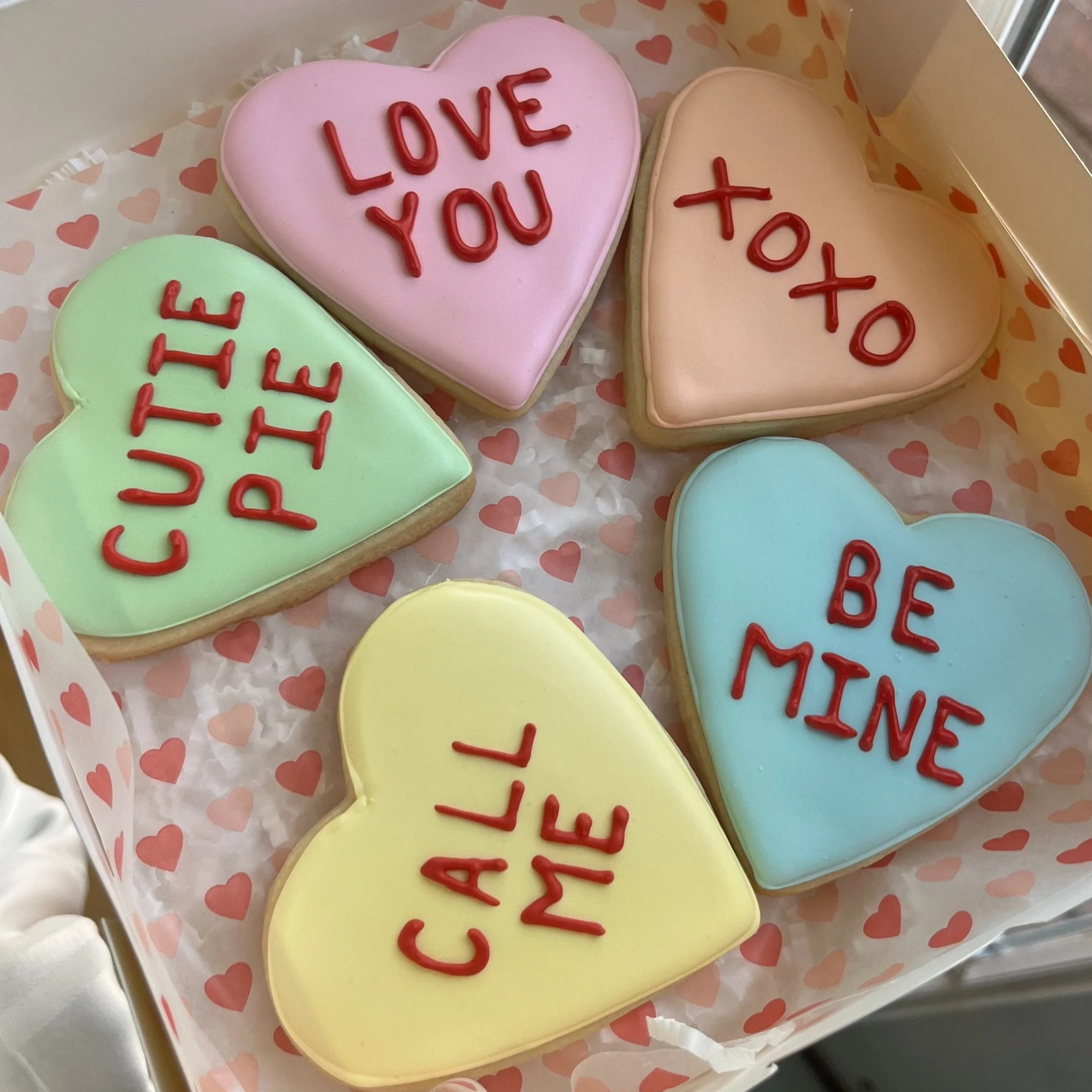 Shop › Decorated Sugar Cookie Decorated Sugar Cookie from $4.00 Buttery sugar cookie decorated as a classic Valentine’s Day candy “conversation candy hearts” Buttery sugar cookie decorated as a classic Valentine’s Day candy “conversation candy hearts” Color: Select Color 1 6 Quantity: Add To Cart Added!